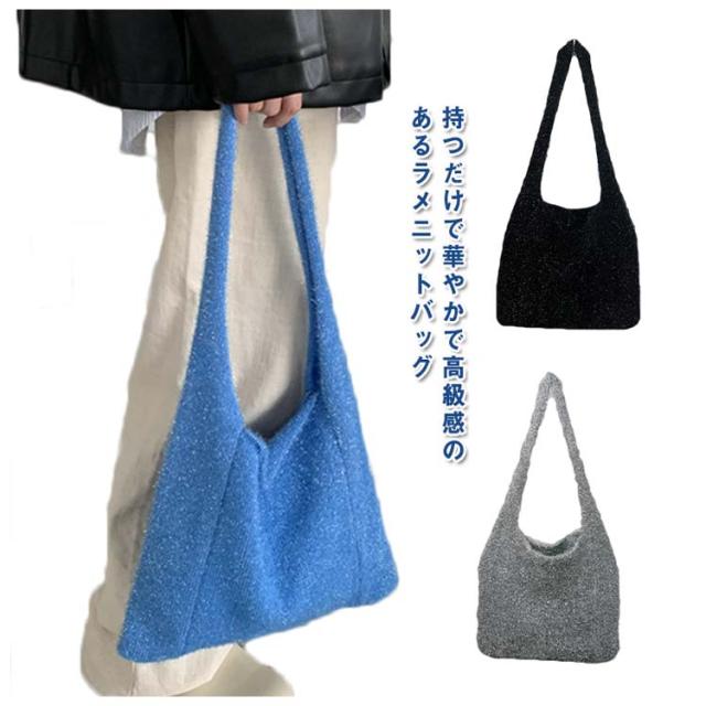 ブラック ラメ 縦型 ラメニットバッグ 冬 手提げバッグ A4 生地 ニット バッグ ハンドバッグ ラメニット 韓国 レディース ミニバッグ サブバッグ ラメ入り ショルダーバッグ 春 夏 秋 トートバッグ きらきら ラメニットバッグ シルバー ブルー 虹色 かわいい 高級感 華やか