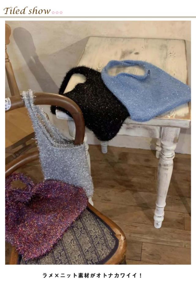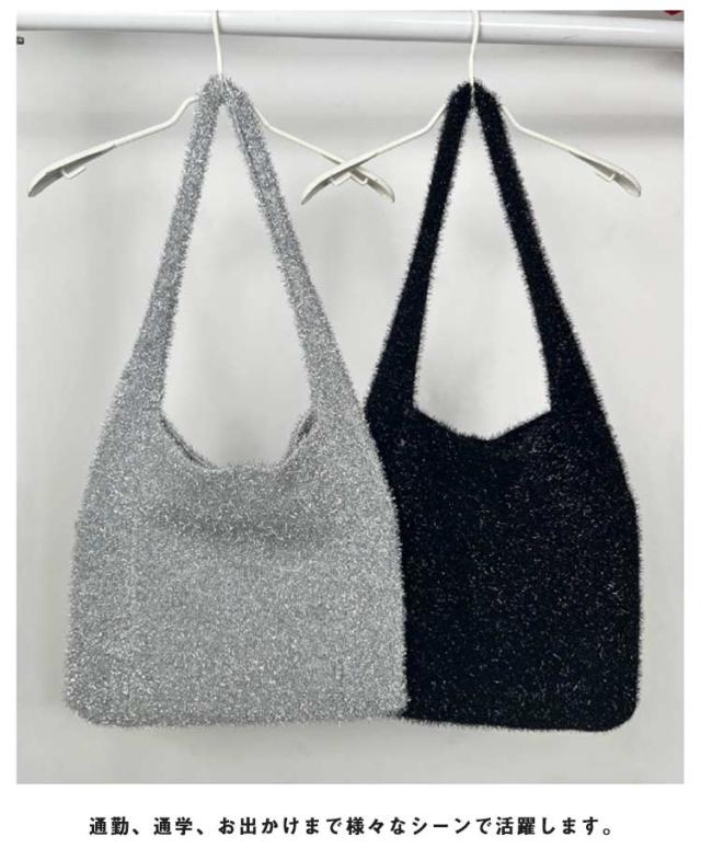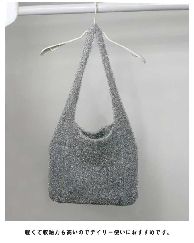 | 持つだけで華やかで高級感のあるラメニットバッグ ラメ×ニット素材がオトナカワイイ! らめくニットバッグがスタイルのアクセントになります。 通勤、通学、お出かけまで様々なシーンで活躍します。 軽くて収納力も高いのでデイリー使いにおすすめです。 | |