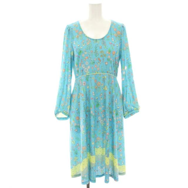 【中古】フランシュリッペ おもちゃの国ワンピース ひざ丈 花柄 総柄 長袖 M 水色 ライトブルー 1110150