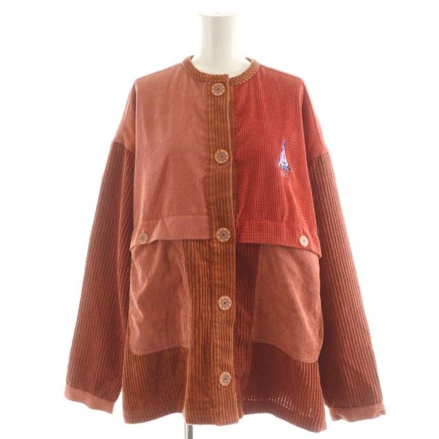 【中古】ゴースローキャラバン go slow caravan ノーカラージャケット 切替 コーデュロイ 刺繍 1 赤 レッド 茶