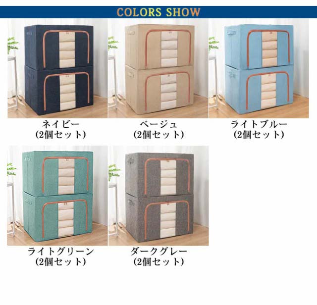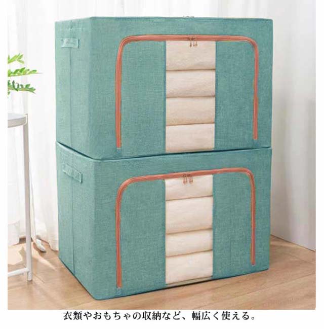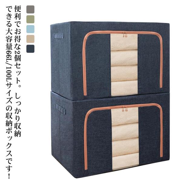 | 便利でお得な2個セット。しっかり収納できる大容量66L/100Lサイズの収納ボックスです! 中身が見える透明窓付き 正面に窓が付いているので外から中の物が見え何が入っているか一目瞭然! 積み重ねたままスムーズに中身を取り出せます。 ダブルファスナー デザイン性と、利便性に優れたダブルファスナーで ちょっとした衣類の取り出しも簡単です! コンパクトに折りたためるので使わないときはちょっとした隙間に収納できる。 衣類やおもちゃの収納など、幅広く使える。 | |