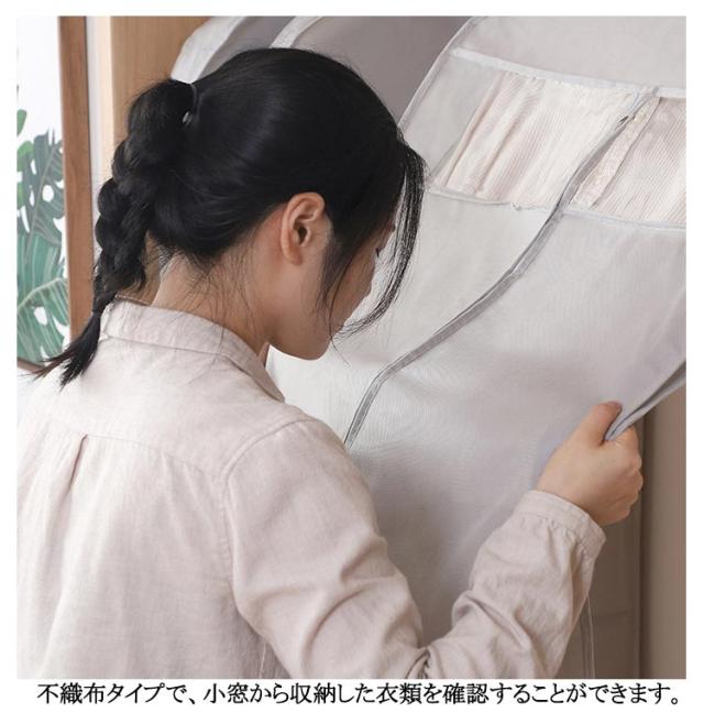 | 3D立体的な不織布衣類カバー。【3枚組】【60*10*88cm?60*10*108cm?60*10*128cm】 通気性の良い不織布で作られているため大切な洋服などをホコリ、カビ、虫、汚れや湿気からしっかり守って綺麗に収納出来ます。 不織布タイプで、小窓から収納した衣類を確認することができます。 真ん中のファスナーを開けてサッと洋服を収納できます。 普通の洋服カバーと違い、裾の部分が閉じているため、床に落ちているほこりの侵入を防ぎます。 洋服カバーが汚れた場合、濡れた布で拭きすぐに綺麗になります。 使わないときは折りたたんでコンパクトに収納可能。 クローゼットの中が整理でき、きれいに片付けます。スペースを無駄なく有効活用して、見た目もスッキリです。 ※ハンガーは付属しておりません。 | |
