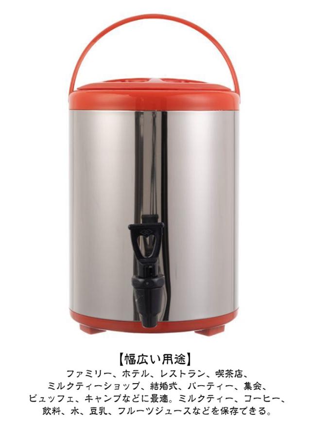 | 大容量6L 8L 10L。アウトドア、キャンプサイトからリビング、ダイニングまで、場所を選ばないインテリアライクな大型ウォータージャグ。 注水や洗浄の際に便利な広口タイプ。 真空断熱構造なので、冷たい飲み物でも熱々の飲み物でも、長時間温度をキープ。 超高密度ウレタンフォームを断熱材に使用し、温度キープ力抜群。 持ち運びに便利なハンドル&折り畳んで収納できる三脚スタンド付。 真夏の屋外イベント(アウトドア、ピクニック、運動会)に冷たい飲み物を持って行ったり、真冬のキャンプで温かいスープを作るなど、野外での使用はもちろん、パーティーでコーヒーやお茶などのサーバーとしてもおしゃれに使用できます。【幅広い用途】ファミリー、ホテル、レストラン、喫茶店、ミルクティーショップ、結婚式、パーティー、集会、ビュッフェ、キャンプなどに最適。ミルクティー、コーヒー、飲料、水、豆乳、フルーツジュースなどを保存できる。 普段使いにリビングやダイニングに出しっぱなしでもOK。 キャンプ、アウトドア、ホームパーティ、インテリア好きの方への贈り物にピッタリです。 | |