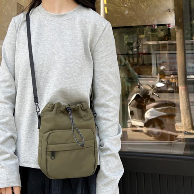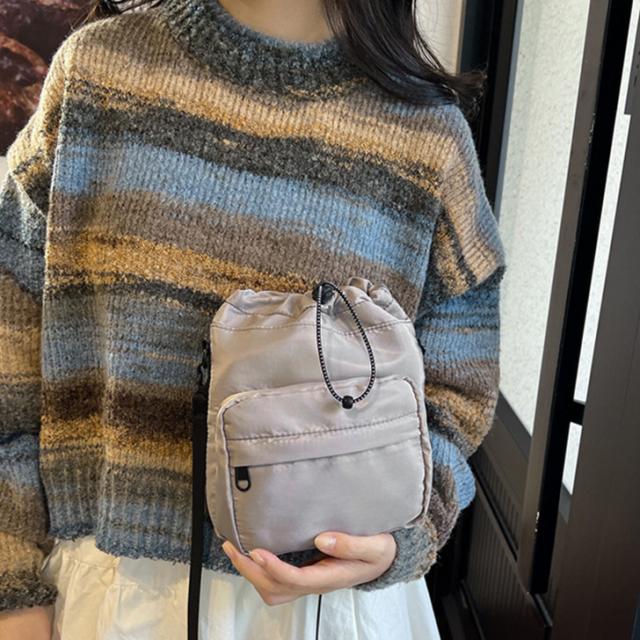 新作 フロントファスナーポケット撥水巾着ミニショルダーバッグ メンズ レディース バッグ ポーチ 小物入れ 肩掛け 斜めがけ 軽量 軽い 小さめ 小さい 巾着 スマホショルダー 収納 おしゃれ カジュアル アウトドア