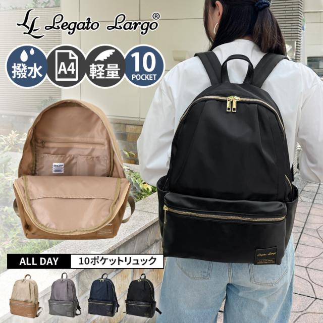 新作 Legato Largo レガートラルゴ ALL DAY A4 10ポケット 撥水 リュック LT-X0452 リュックサック レディース 軽量 大容量 ブランド 通勤 通学 デイパック 多機能 多収納
