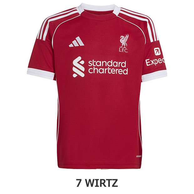 ジュニア リバプール 25-26 ホーム 半袖レプリカユニフォーム 7.フロリアン・ヴィルツ 【adidas|アディダス】クラブチームレプリカウェアーjyf33-jv6436-7-w