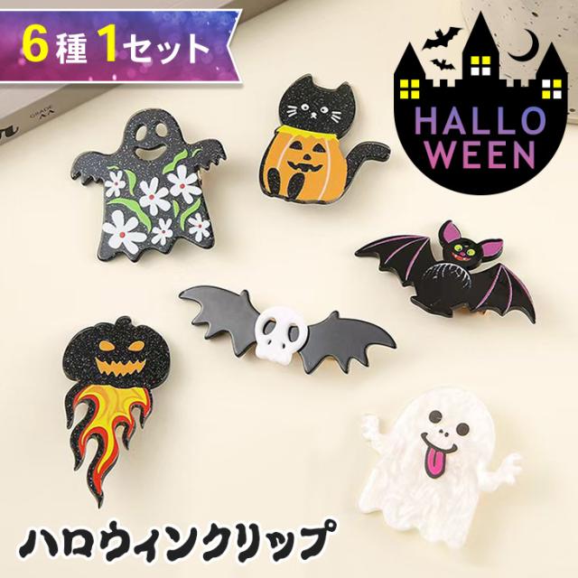 新作 6種類セットハロウィンアクリルヘアクリップ ハロウィン レディース キッズ 子供 女の子 ヘアクリップ ヘアピン 髪留め 髪飾り ヘアアクセサリー アクセサリー 仮装 コスプレ 飾り 装飾 おしゃれ かわいい