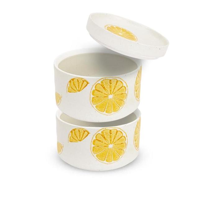 J-kitchens 1人用 万能 重箱 2段 ( お重 お重箱 ) 陶器 食洗機対応 電子レンジ対応 波佐見焼 日本製 280cc x 2 11cm x 12.8cm ホワイト レモン