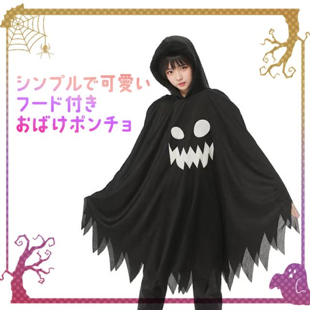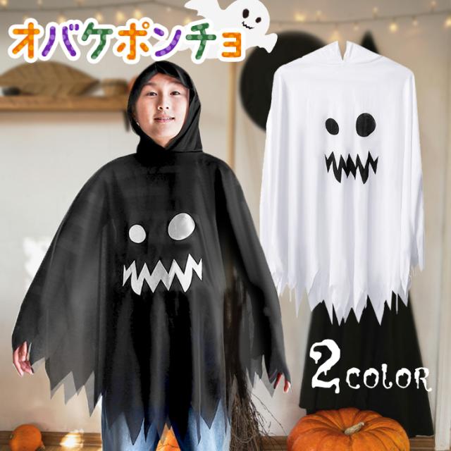 新作 おばけプリントフード付きポンチョ レディース 大人 キッズ 子供用 ハロウィン 仮装 コスプレ コスチューム 衣装 おばけ オバケ 幽霊 ワンピース マント ポンチョ 被り物 飾り 装飾 パーティー イベント