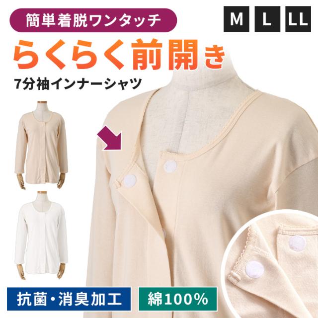 新作 綿100%★簡単着脱前開き抗菌消臭7分袖インナーシャツ インナー レディース トップス 肌着 下着 前開き肌着 女性 七分袖 前あき コットン100% ゆったり 大きいサイズ 薄手 敏感肌 介護 入院 高齢者