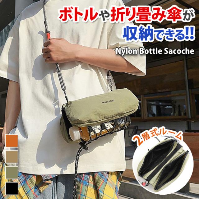 新作 多機能撥水2層式ナイロンボトルサコッシュ メンズ レディース ボトルサコッシュ ボトルショルダー ショルダーバッグ サコッシュ ペットボトル 水筒 スマホ スマホショルダー スマホポーチ 斜めがけ 肩掛け 軽量
