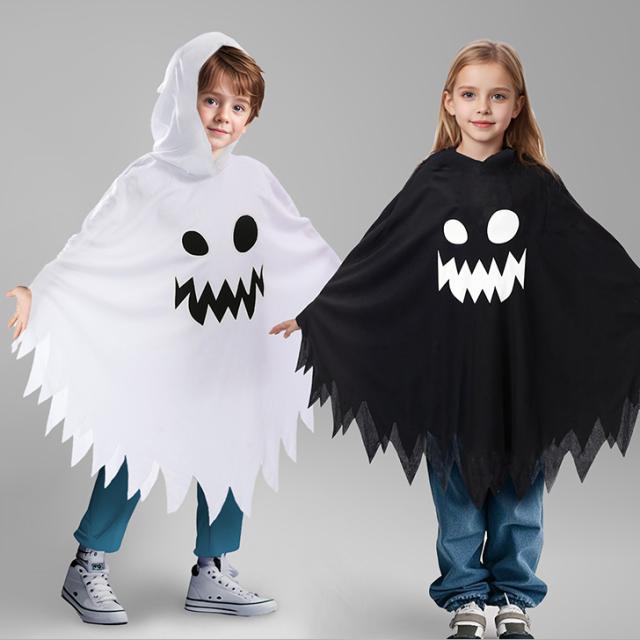 新作 おばけプリントフード付きポンチョ レディース 大人 キッズ 子供用 ハロウィン 仮装 コスプレ コスチューム 衣装 おばけ オバケ 幽霊 ワンピース マント ポンチョ 被り物 飾り 装飾 パーティー イベント