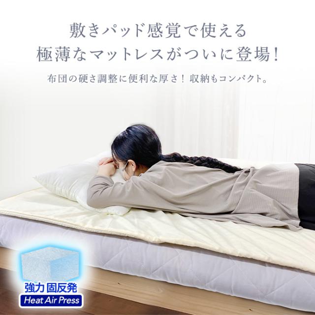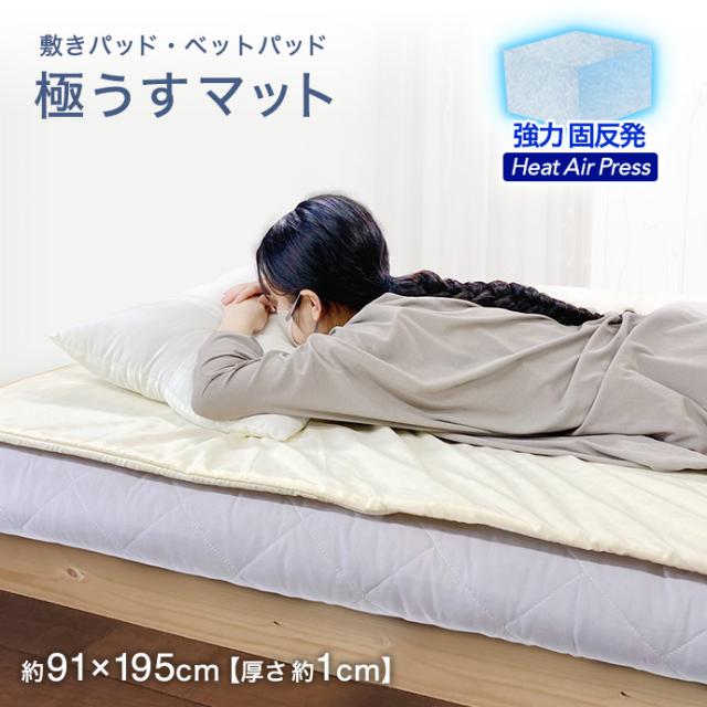 日本製 ベッドパッド シングル 【約91×195cm 厚さ1cm】 極うす マットレス シングル ベッドパッド 敷きパッド シート シーツ マット 高反発 エアープレス 少し硬め 収納 三つ折り 軽量 介護 向け シングル 抗菌 防臭 消臭 防カビ 防ダニ ほこり防止 極薄 厚さ1cm 国産