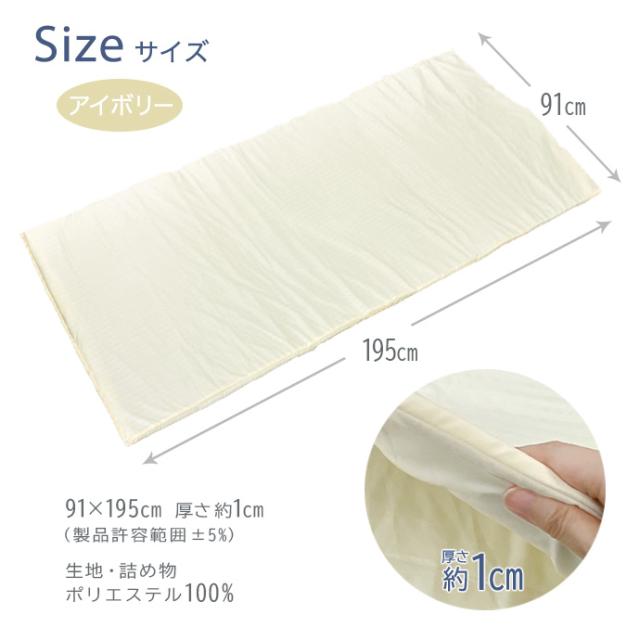 極うすマット【アイボリー】 約91×195×厚さ1cm 製品許容範囲+5%-5% |