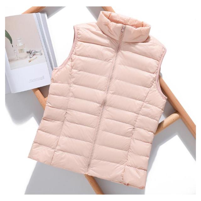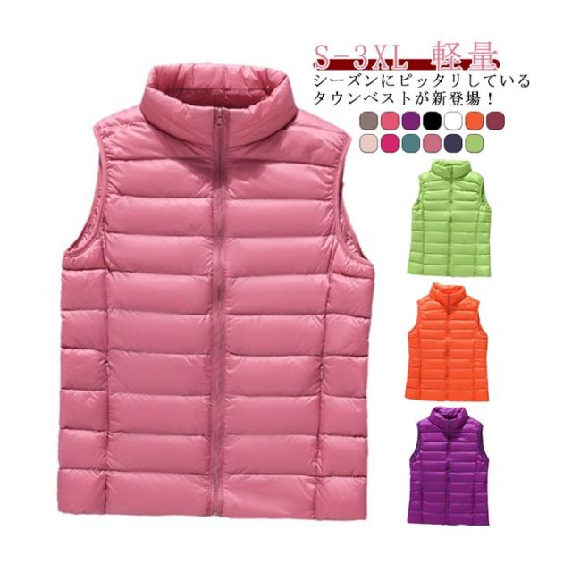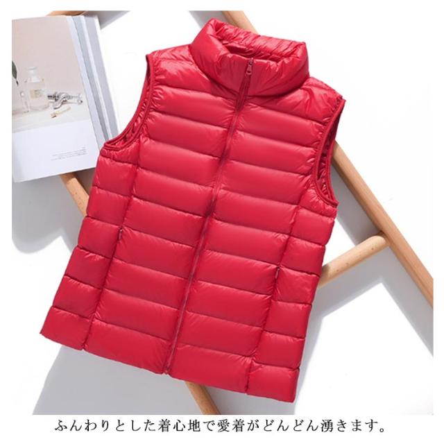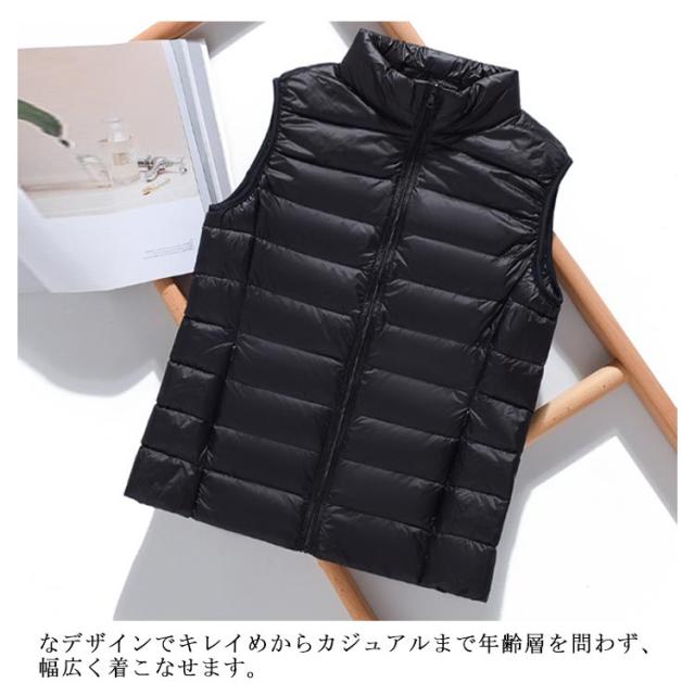 ノースリーブ ウンジャケット 冬 トップス ベスト 秋 ショート丈 立ち襟 ダウンベスト 暖かい 薄い レディース レディース 防寒 軽量 無地 シンプル 女性 アウター 通勤 通学 大人