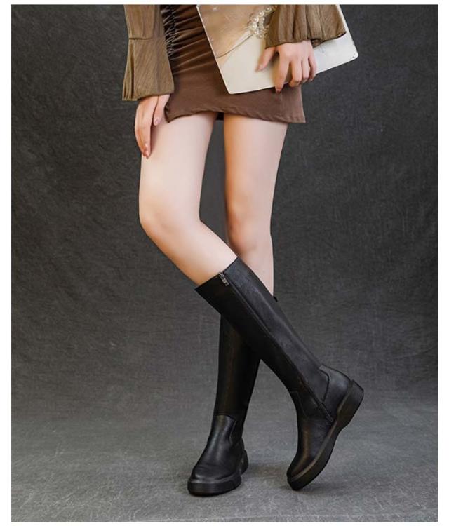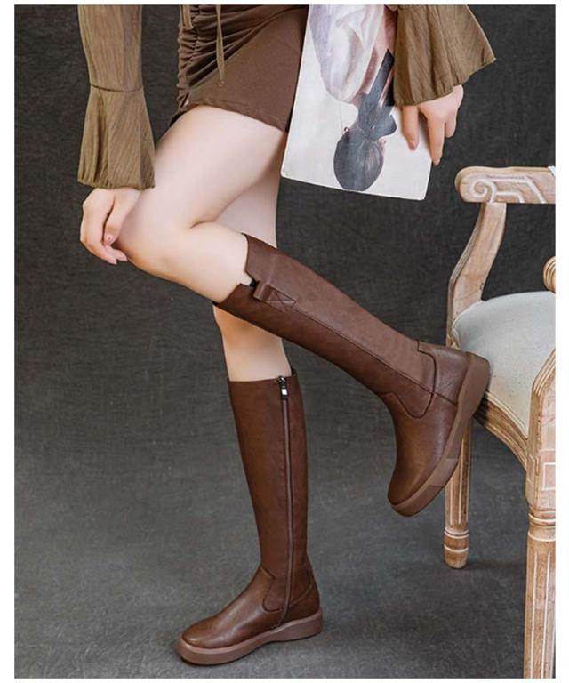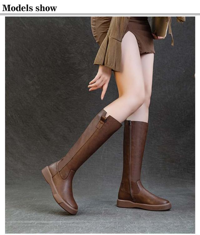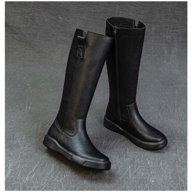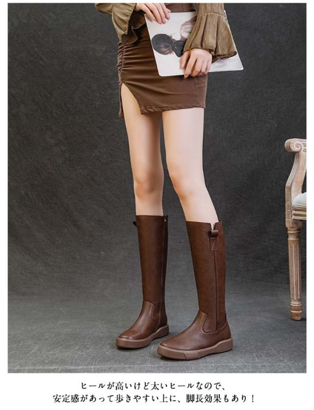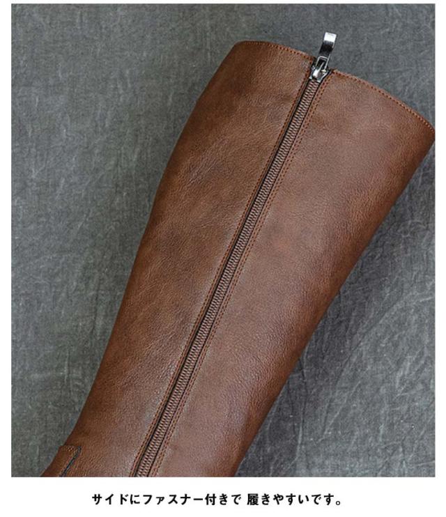 レディース ロングブーツ ジョッキーブーツ ゆったり ロングブーツ 本革 茶色 疲れない 春 筒周り ローヒール 美脚 黒 本革 裏起毛 フラットシューズ サイドジップ 冬 秋 防寒ブーツ おしゃれ 歩きやすい 22.5-26.5cm