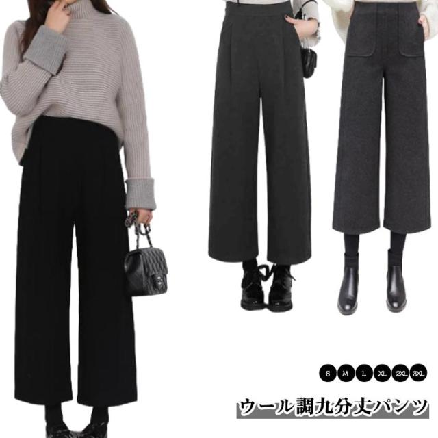 ボトム ウール調 ストレートパンツ レディース パンツ ウールパンツ ポケットあり ボトムス 暖かい オフィス 通勤 OL 秋