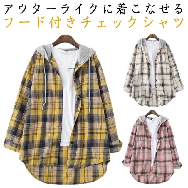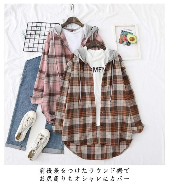 30代 シャツ チェックシャツ シャツ レディース 長袖 パーカー アウター 大きいサイズ フード付き 長袖シャツ フード付き ライトアウター トップス 羽織り シャツ 柄シャツ カーディガン チェック柄 春 秋 カジュアル ゆったり 通勤 OL 体型カバー シャツ 40代