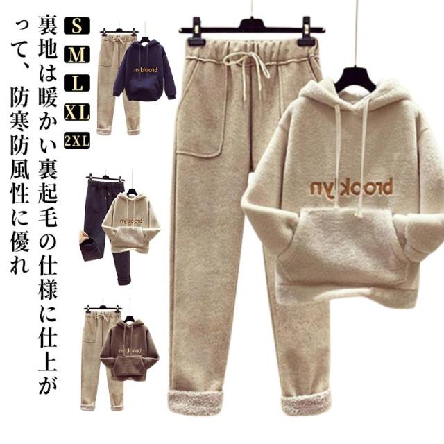 レディース 柔らか 暖かい セット 裏起毛 パーカー 暖かい ジャージ スウェット ボア セットアップ ルームウェア 上下 パジャマ 部屋着 防寒 トレーナー 裏フリース 春 秋 冬 長袖 スポーツウェア おしゃれ お家 普段
