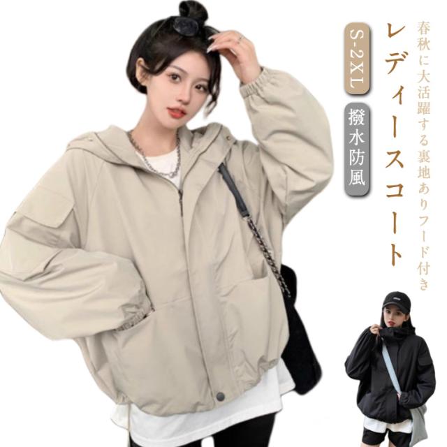 秋 春 マウンテンパーカー レディース 軽量 ミリタリージャケット ライトジャケット 防風 撥水 アウター 散歩 登山 カジュアル マウンテンパーカー 防花粉 キャンプ ジャンパー ジャケット レインコート パーカー アウトドア 薄手 秋コート おしゃれ 無地