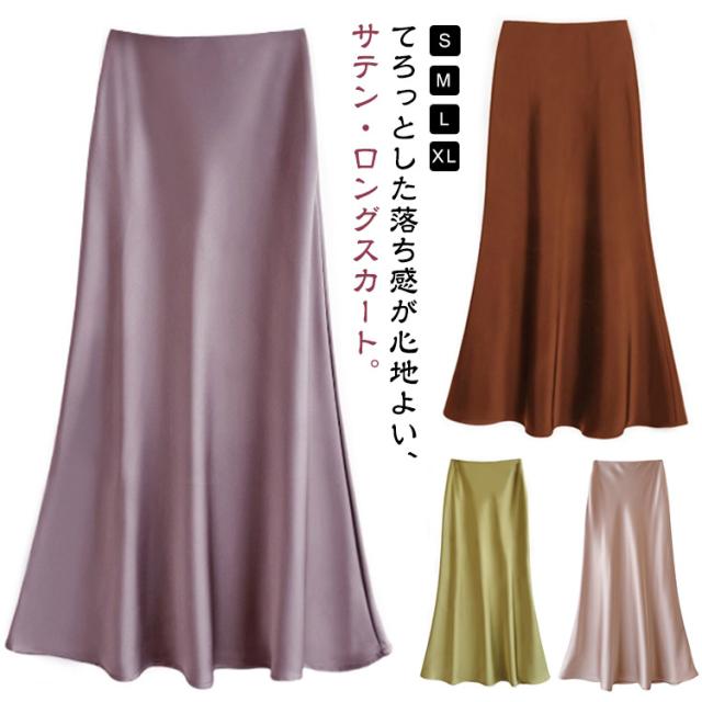 マキシ丈 マーメイドスカート レディース タイトスカート スカート フレア サテン 落ち感 エレガント ハイウエスト サテン 上品 光沢感 マーメイド 大人 きれいめ 体型カバー 通勤 フェミニン 涼感 春 夏 40代 楽ちん 韓国風 秋 20代 30代 ロングスカート 50代 無地
