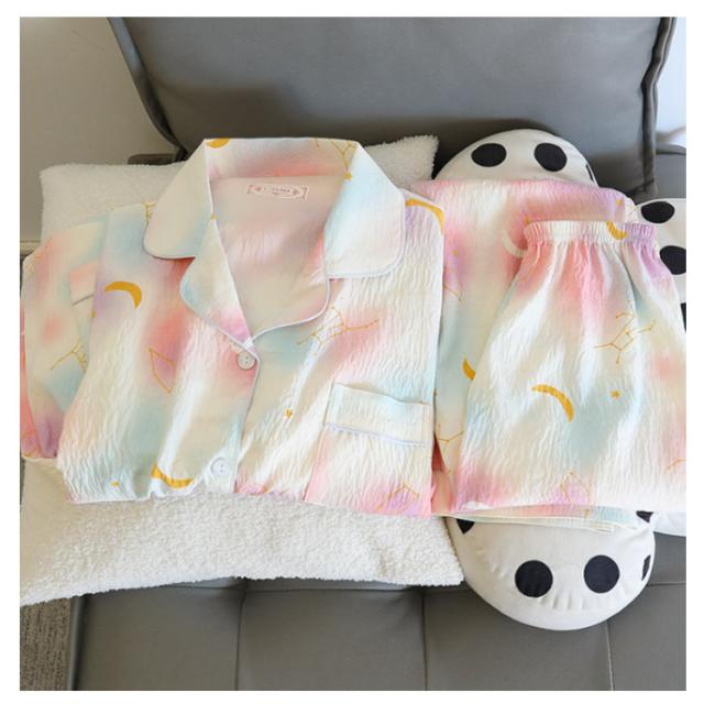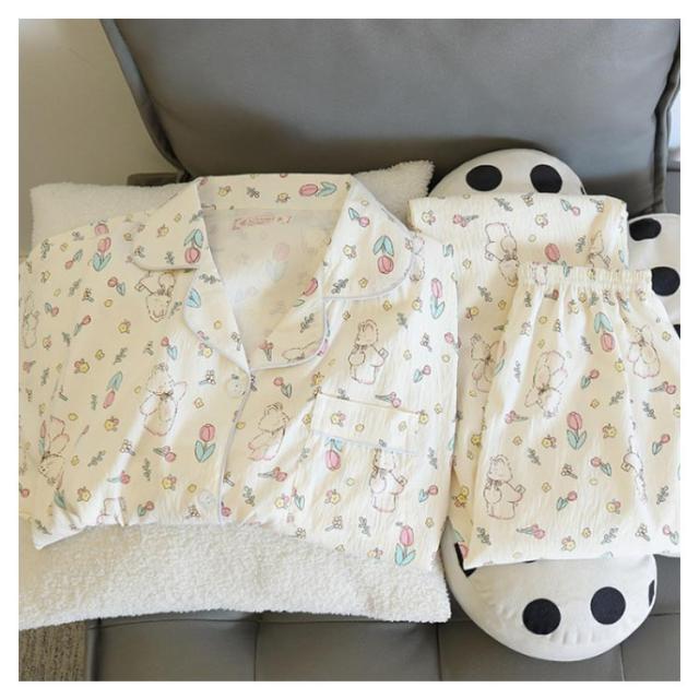 | 【M?XL】【前開きパジャマ】 豊富な柄展開がかわいい前開きパジャマ。 窮屈感のない、ゆとりのあるシルエット。 ウエストは総ゴム仕様でらくちん。 部屋干しても乾きがよい。 | |