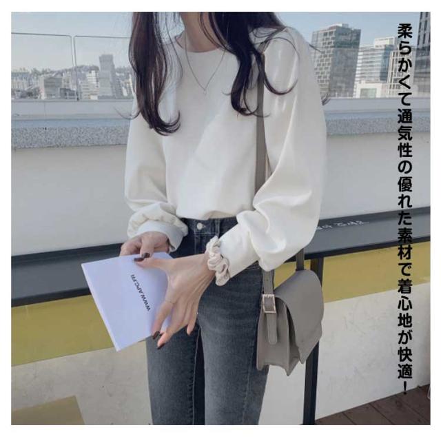 ブラウス 長袖 シャツ オフィス 秋 丸襟 カジュアル トップス おしゃれ 襟なし パフスリーブ レディース 可愛い 薄手 長袖tシャツ ゆったり 秋物 トップス キレイめ 無地 長袖 カットソー カジュアル 通勤 大人 オフィス