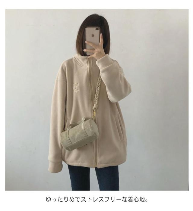 | 【可愛いふわふわフリースジャケット】 【前開きファスナーで開閉も楽々なボアブルゾン】 ワンマイルウェアや普段着にも気軽に着られる羽織りアウター。 ゆったりめでストレスフリーな着心地。 便利なサイドポケット、デザインのポイントでもあるお洒落で可愛い胸刺繍。 暖さをキープしながら大人可愛いシンプルなカジュアルスタイルが楽しめます。 | |