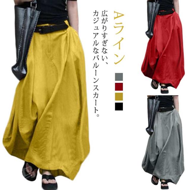 無地 Aライン マキシスカート 原宿風 フレアスカート ミリタリー ゆったり ふんわり レディース 大きいサイズ チノ ボトム ロングスカート シンプル きれいめ 大人 可愛い 着痩せ 秋 春 体型カバー 夏 おしゃれ カジュアル バルーンスカート