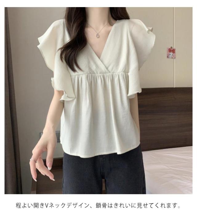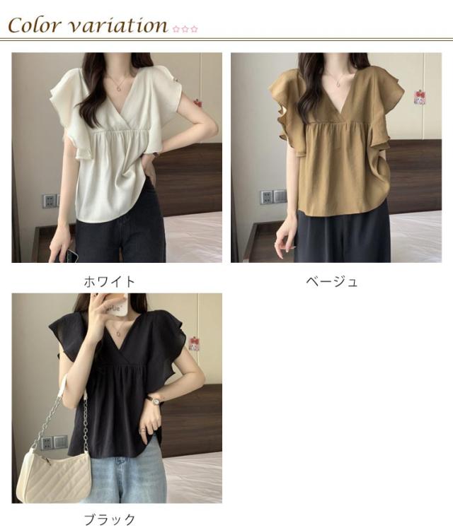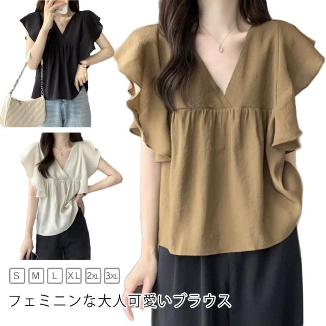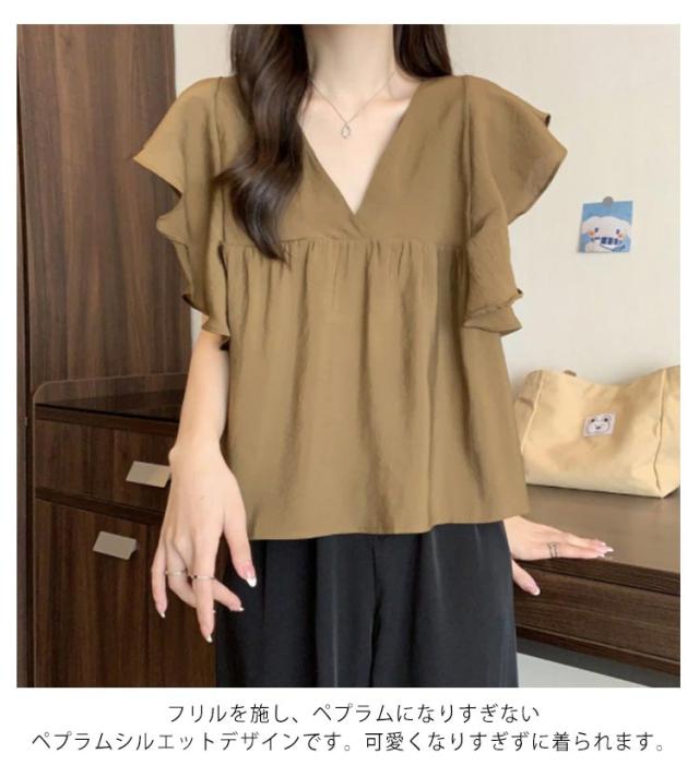 大人 細身 大きいサイズ フリル フェミニン ペプラム Vネック トップス ブラウス 夏 きれいめ ノースリーブ 可愛い 春 ラッフル 小柄 おしゃれ 体型カバー 着?せ ノースリーブ 無地 ゆったり レディース OL オフィス 通勤 通学 おしゃれ 秋