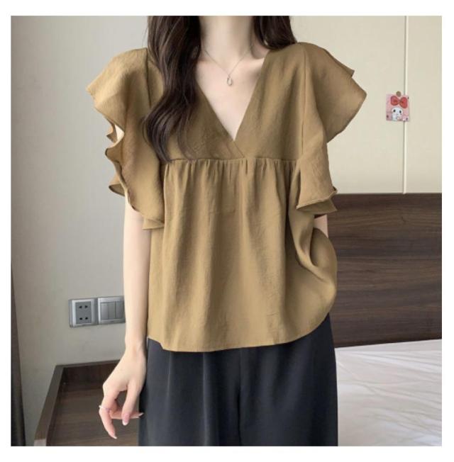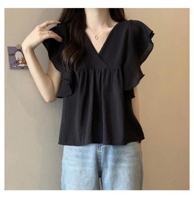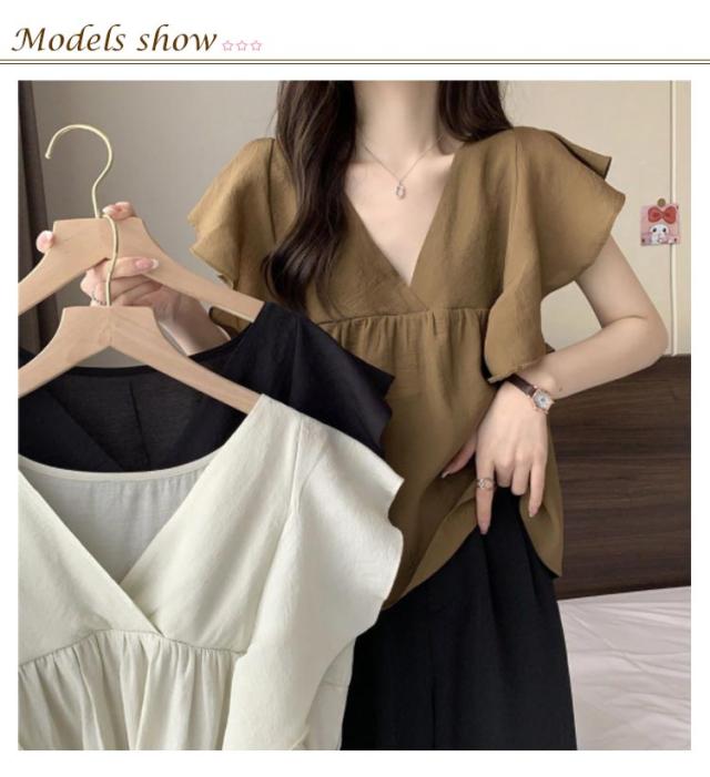 | フェミニンな大人可愛いブラウス さらっとした生地感で夏に大活躍のトップスです♪ 程よい開きVネックデザイン、鎖骨はきれいに見せてくれます。 フリルを施し、ペプラムになりすぎないペプラムシルエットデザインです。可愛くなりすぎずに着られます。 バランスがよい丈感、パンツにもスカートスタイルにも合わせやすい着回し力抜群アイテム。 | |