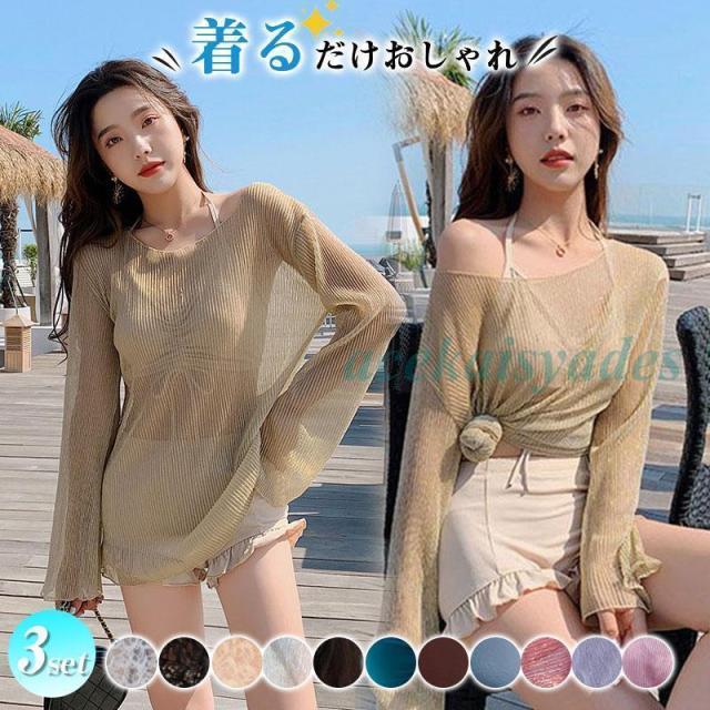 水着 レディース ビキニ 3点セット セパレート おしゃれ水着セット 体型カバー ママ水着レース 透け 夏 海 ビーチ 水陸両用 着痩せ