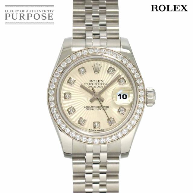 ロレックス デイトジャスト 179384G G番 ルーレット ダイヤベゼル レディース 10Pダイヤ シルバー K18WG 自動巻き 90289338 【中古】時計