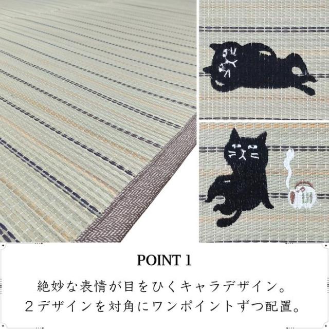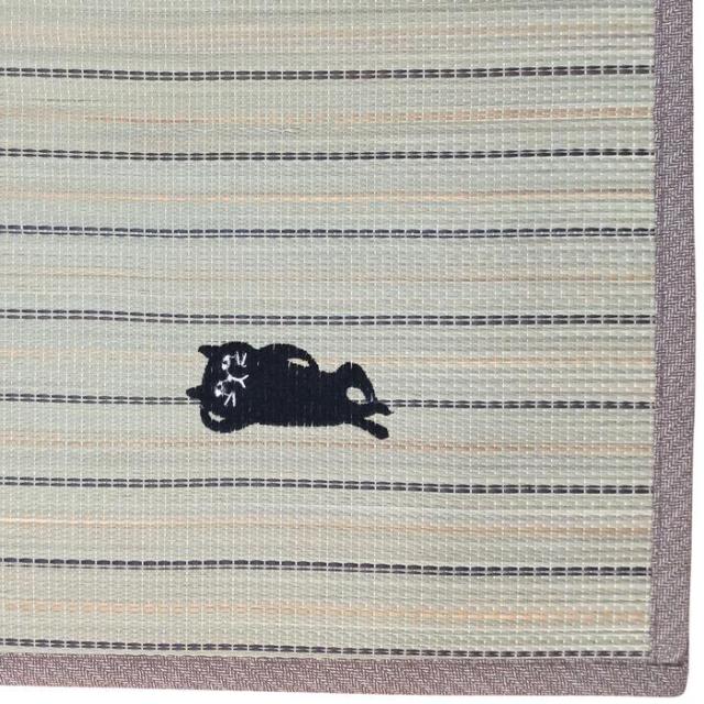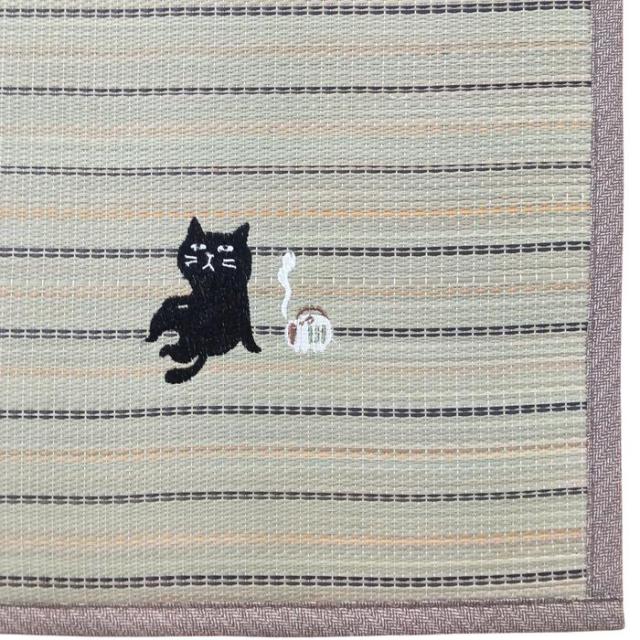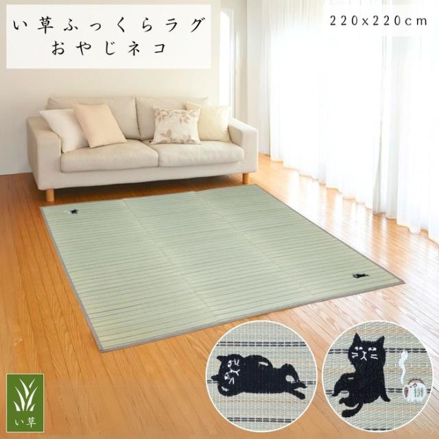 い草ふっくらラグ おやじネコ 220x220cm 4.5畳用 裏面不織布 ウレタン10mm かわいい刺繍入