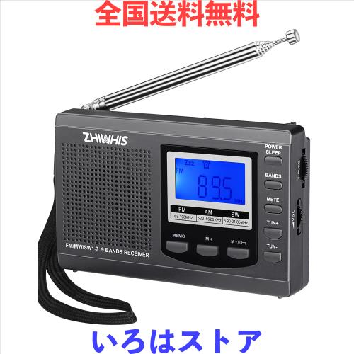 ZHIWHIS ラジオ 小型ポータブル FM/AM/SW ワイドfm対応 高感度クロック防災ラジオ 電池式 タイマー/目覚まし時計/デジタル時計/キーロッ