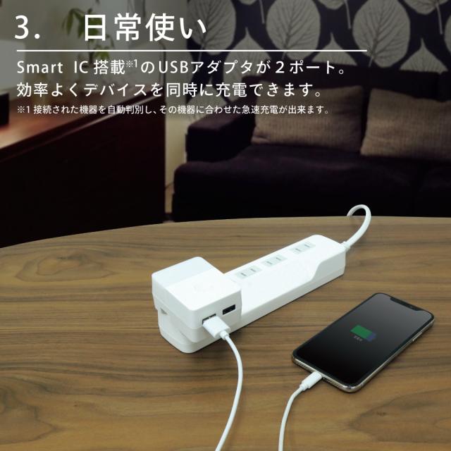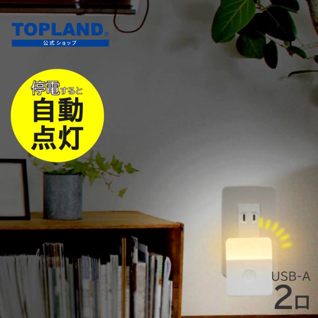 ライト付きUSBアダプタ 停電 自動点灯 防災ライト 災害対策 非常用 ライト 防災 グッズ 常夜灯 非常灯 電源アダプタ USBアダプタ USBポート 2ポート 充電器 室内 リビング ベッドサイド CHAC24L-WT 【トップランド 公式ショップ】