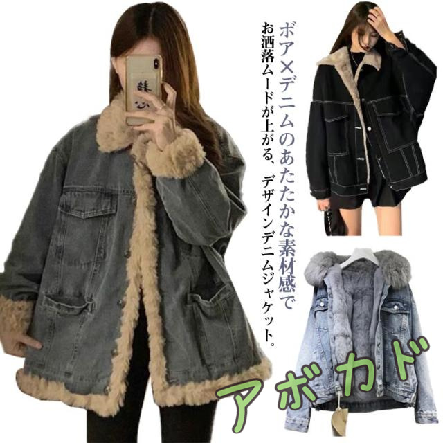 デニムボアジャケット 長袖 防寒 秋冬 裏起毛 裏ボア ボアジャケット デニムジャケット もこもこ あったか ボアコート Gジャン トップス デニムコート デニムボアジャケット 厚手 ゆったり レディース 体型カバー カジュアル 襟付き アウター 大きいサイズ おしゃれ 通勤 通学