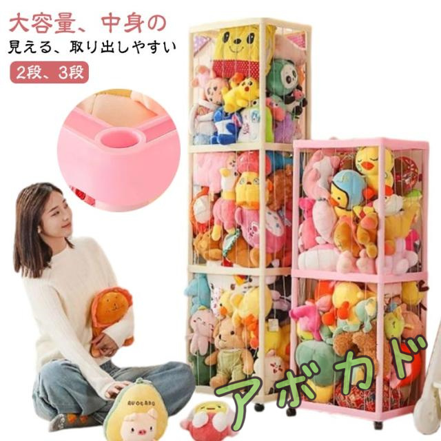 ぬいぐるみ おもちゃ 収納ボックス 整理箱 収納バスケット 大容量 おもちゃ収納 ラック 棚 2段 収納 3段 収納ネット ハンモック ケース 中身の見える メッシュ 組み立て簡単 展示ボックス
