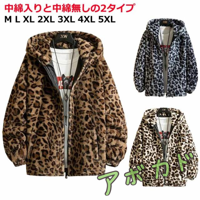 レオパードジャケット ボアジャケット ヒョウ柄 ボア ブルゾン メンズ ジップアップブルゾン フード付き ライトアウター パーカー 中綿入りと中綿無しの2タイプ シープボア 羽織 フェイクファー もこもこ 暖かい 厚手 おしゃれ 防寒 秋冬 韓国ファッション 原宿系