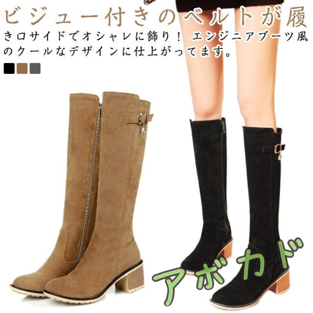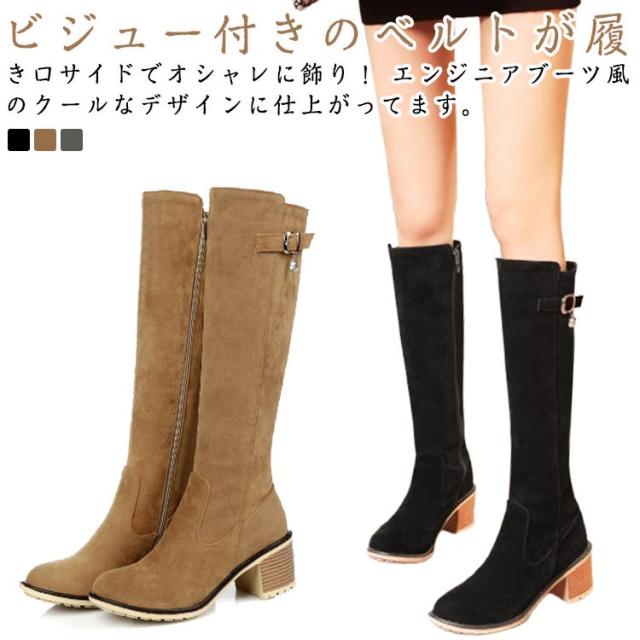 エンジニア オールシーズン カジュアル ベルト付き レディース 黒 ジョッキーブーツ ラウンドトゥ ブラック ロングブーツ グレー 大きいサイズ 木目ヒール レディース靴 秋ブーツ スウェード おしゃれ 袴ブーツ コスプレ