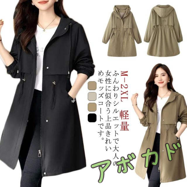 コート モッズコート スプリングコート トレンチコート 春 フード付き ジャケット アウター トレンチコート ライトアウター 膝丈ン 長袖 コート 軽量 春コート レディース 上品 きれいめ 体型隠し 軽やかに羽織れる 30代 40代