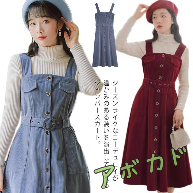 コーデュロイ ジャンパースカート サロペット レディース キャミワンピース ロングワンピース ミモレワンピース ノースリーブ ボートネック ゆったり オーバーオール カジュアル お洒落 クラシカル 重ね着 レイヤード 清楚 大人 可愛い