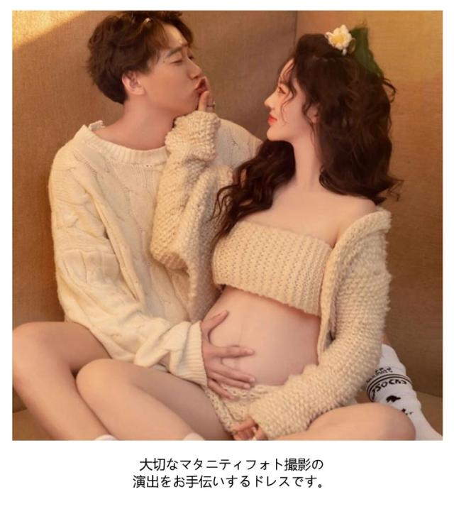 マタニティ 写真服 フォト マタニティ ニット ママ ペア ニット上着 撮影 靴下 撮影服 衣装 上下セット お揃い パンツ ショート丈 カップル セーター 3点セット オーバー チューブトップ 長袖 写真 衣裳 妊婦 妊娠 記念撮影 妊婦衣類 おしゃれ