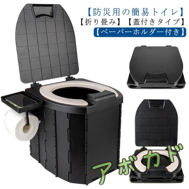 簡易トイレ 非常用トイレ 防災用品 蓋付き 携帯トイレ 最新型 災害時 ペーパーホルダー付き 最新型 車載用 緊急トイレ ポータブルトイレ 折りたたみ式 水洗い可能 旅行 アウトドア