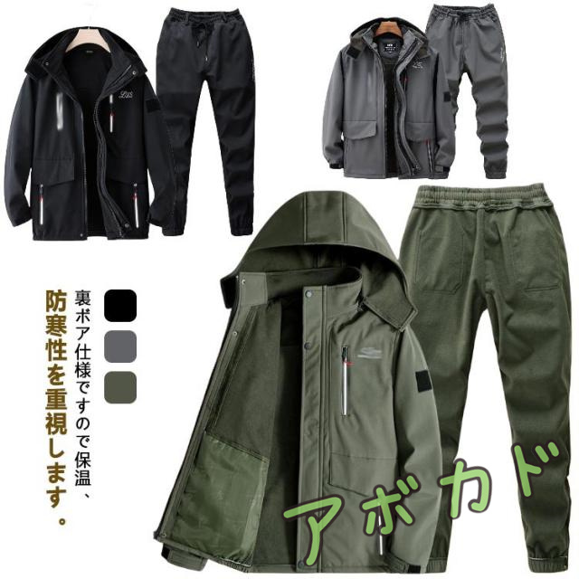 マウンテンジャケット 上下セット メンズ 秋冬 厚手 防寒 防水 撥水 作業服 防風 厚手 裏起毛 裏ボア 登山服 スキーウェア 2点セット マウンテンパーカー 長ズボン セットアップ ハイキングジャケット ワークパンツ アウトドアウェア ミリタリー 暖かい アウター 防寒着