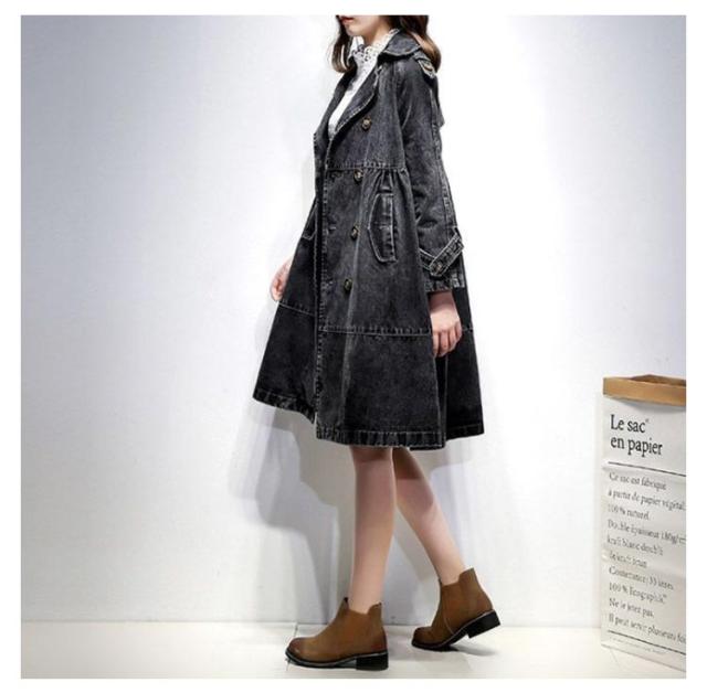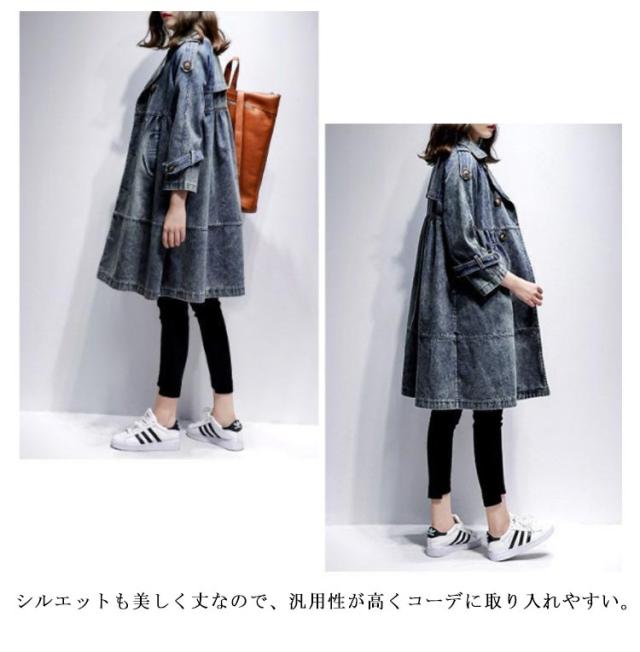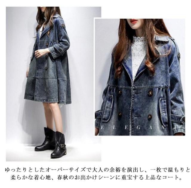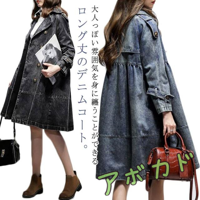 ダブルボタン デニム デニム アウター 羽織り 大きいサイズ デニムジャケット ロング丈 ジージャン コート ロングコート Gジャン レディース トレンチコート デニムコート 通勤 通学 カジュアル 体型カバー M L XL 2XL