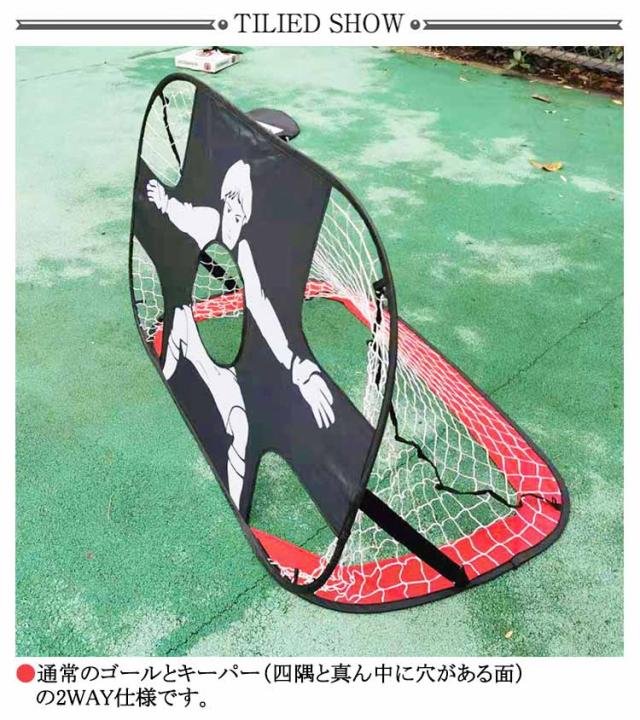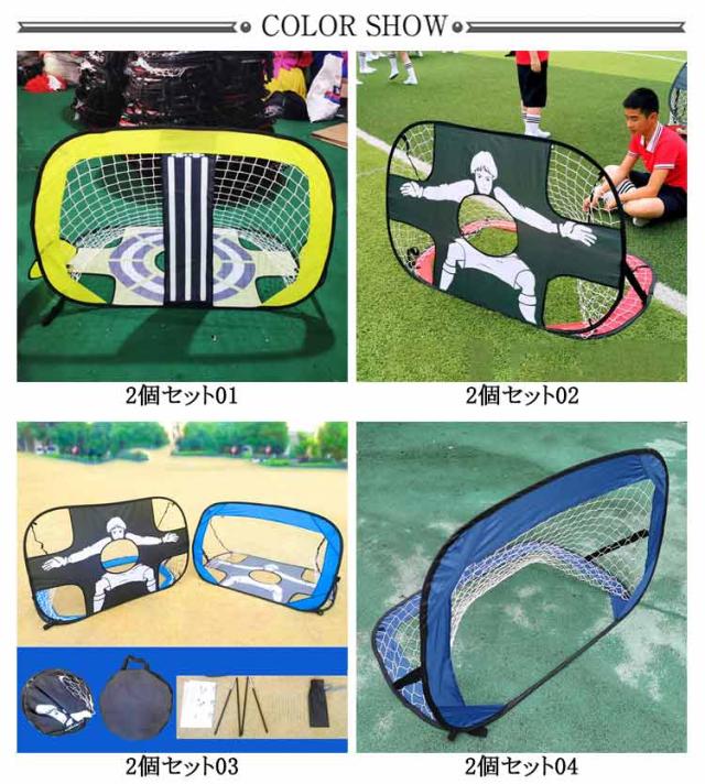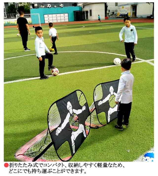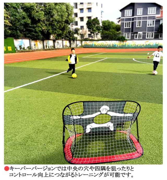 | 2個セット/収納バッグ付き ●ワンタッチで簡単組立て式のポータブルサッカーゴールです! ●通常のゴールとキーパー(四隅と真ん中に穴がある面)の2WAY仕様です。 ●底面を変えるだけで、通常のゴールバージョンとキーパーバージョンが選べます。 ●キーパーバージョンでは中央の穴や四隅を狙ったりとコントロール向上につながるトレーニングが可能です。 ●折りたたみ式でコンパクト、収納しやすく軽量なため、どこにでも持ち運ぶことができます。 ●収納袋はレッドが手さげタイプ、その他は手さげ/リュック/肩掛け兼用タイプとなります。 | |