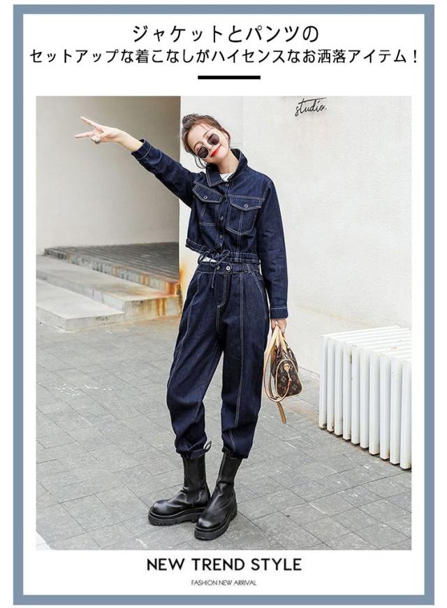 | 幅広い着こなしが叶う!カジュアルの定番デニムセットアップ ジャケットとパンツのセットアップな着こなしがハイセンスなお洒落アイテム! ジャケットやズボンの裾はゴム入りで引き締まったシルエットに! ウエストもゴム仕様で嫌な締め付けがありません。 ハイウエストパンツで美脚効果も抜群! 春・秋兼用で使える万能から使いまわし抜群の優秀アイテム! | |