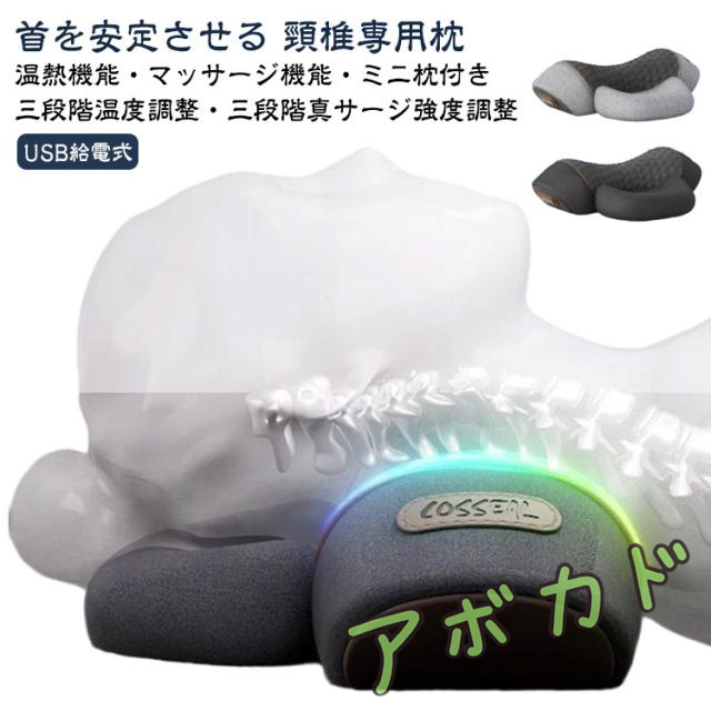 | 首を安定させる 頸椎専用枕 温熱機能・マッサージ機能・ミニ枕付き 三段階温度調整・三段階真サージ強度調整 頸椎の七つの関節を自然にほぐす 立体的な曲線で自然なカーブを維持。 夜間を通して頸椎ケア。1日の疲れをリセット! 1日の疲れにサヨナラ 仰向きの姿勢で頸椎を持ち上げ、指圧のように、 瞬時に筋肉や靭帯をほぐす 十分に頸肩とフィットし、 快眠しながら頸肩の違和感を軽減。 マッサージ&ホットケア機能搭載 弱・中・強3つのモードがあり、 血液循環を促進して頸肩筋肉の疲労を軽減。 形状記憶フォーム 低反発記憶機能あり、放圧性能に優れている。 減圧して低反発、元の形へ回復。 頭首スッキリ 長時間に亘る電子機器の操作によって引き起こされるストレートネック (スマホ首)の対策に役立つ枕。 | |