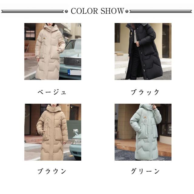 ロング ダウンジャケット ダウン風 ダウンコート 中綿ジャケット 中綿入り ロングコート ロング 秋 冬 フード付き ロング丈 あったか 暖か 防寒 保温 長袖 大きいサイズ 秋